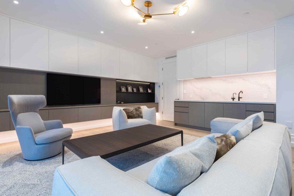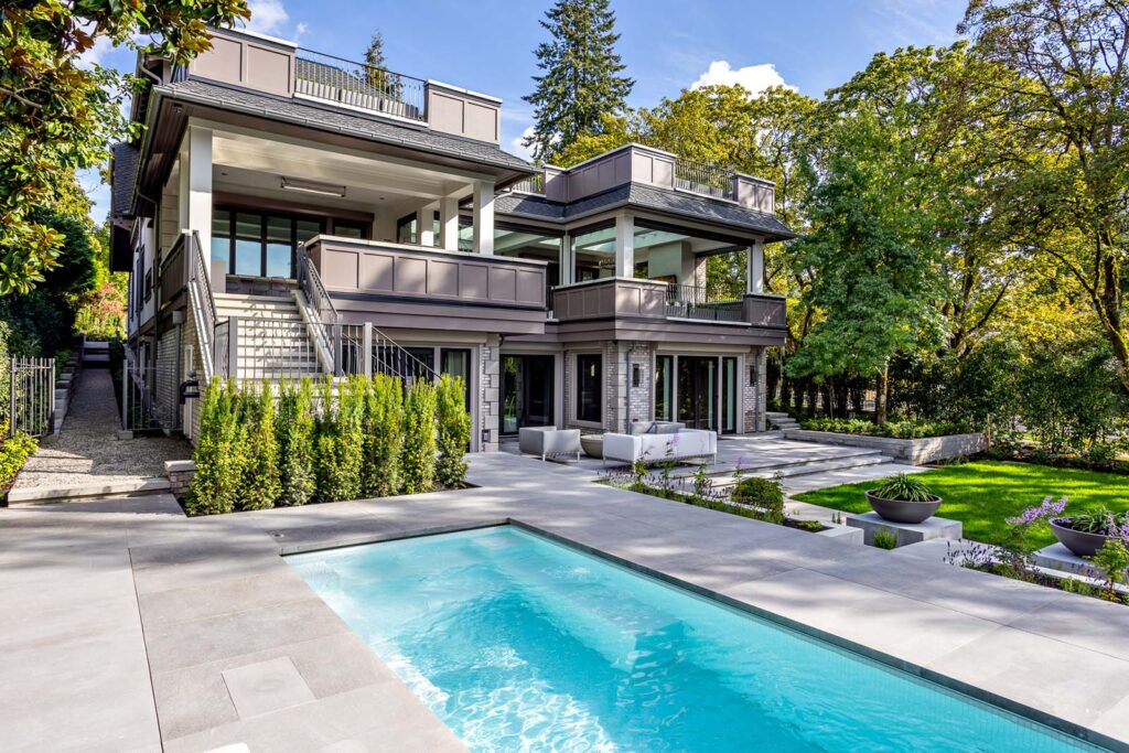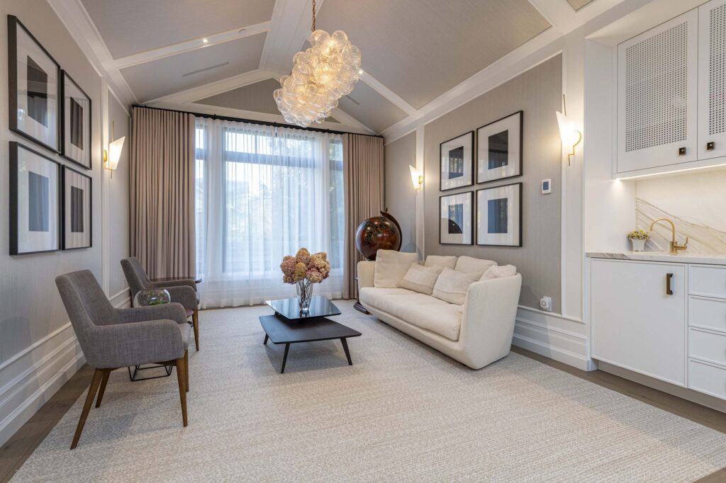 This immaculate home boasts five bedrooms, seven bathrooms, and a 4,000 square foot two-level deck featuring walkable skylights that provide a view of the stars from the covered area below. The uniquely landscaped multi-level outdoor area also includes fully automated screens, a volleyball court, and a swim spa. From precision millwork and perfectly level floors to seamless, nearly invisible doors, the intricate details that make up this home are a testament to what’s achievable when premier tradespeople work towards a beautiful vision. A thoughtfully designed porte cochère provides a sheltered entrance and the entire property runs on a secure, fully automated system that can be controlled from anywhere in the world. Connaught Manor’s main floor and basement exterior walls are finished with a classy brick facade, with cedar trim boards matching the style of 100 years ago with a rock dash stucco finish in between.
